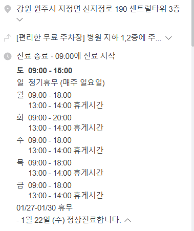 - 주소: 강원 원주시 지정면 신지정로 190 센트럴타워 3층
