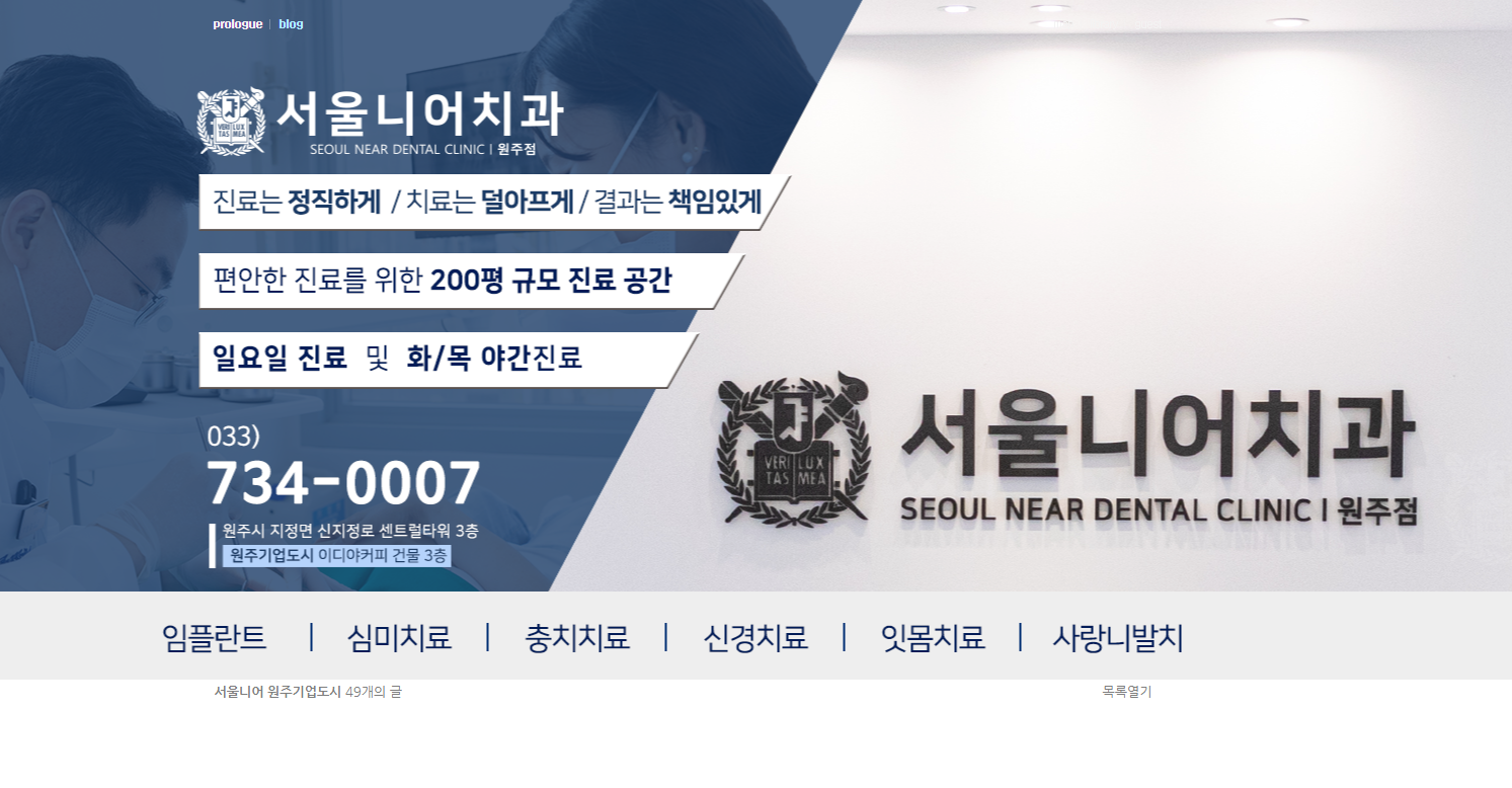 원주시 지역 내에서 임플란트와 다양한 치과 진료를 제공하는 신뢰받는 치과입니다. 친절한 의료진과 최신 장비를 바탕으로 치료의 품질이 뛰어나며, 많은 환자들이 높은 만족도를 보이고 있습니다.