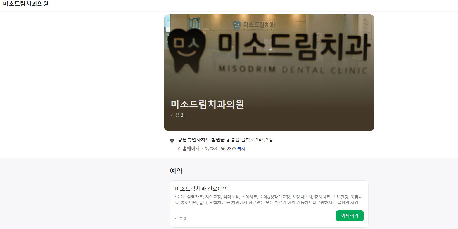 강원도 철원군 동송읍 금학로 247, 2층에 위치한 치과의원으로, 다양한 치과 진료를 제공합니다.