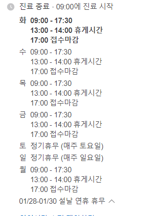 ※ 방문 전 진료 시간을 확인하는 것이 좋습니다.