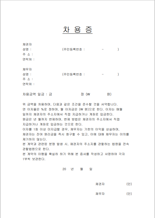 1번 차용증 양식 다운로드