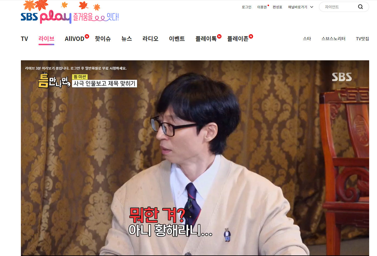 SBS PLAY 앱 보러가기(어떤건지 보고 다운 바로 가능)